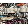 該機(jī)的生產(chǎn)過程如下:瓶子通過分瓶撥輪傳送至三合一灌裝機(jī)的沖瓶機(jī)上。沖瓶機(jī)的回轉(zhuǎn)盤上裝有卡瓶口式不銹鋼瓶夾,瓶夾夾住瓶頸翻轉(zhuǎn)180°使瓶口向下。在沖瓶機(jī)的定區(qū)域,特制噴嘴噴出沖瓶水,對瓶子內(nèi)壁進(jìn)行沖洗。瓶子經(jīng)沖洗、瀝干后在瓶夾夾持下再翻轉(zhuǎn)180°使瓶口向上。洗凈后的瓶子通過輸送帶沖導(dǎo)出并傳送至灌裝機(jī)。進(jìn)入灌裝機(jī)的瓶子由提升氣缸上的瓶夾卡住瓶口保持,并在凸輪作用下實(shí)現(xiàn)上升與下降。灌裝機(jī)采用重力灌裝方式,瓶口上升頂開灌裝閥開始灌裝。灌裝結(jié)束后瓶口下降離開灌裝閥,瓶子通過輸送入旋蓋機(jī)。旋蓋機(jī)上的止旋刀卡住瓶頸部位,保持瓶子直立并防止旋轉(zhuǎn)。旋蓋頭在旋蓋機(jī)上保持公轉(zhuǎn)并自轉(zhuǎn),在凸輪作用下實(shí)現(xiàn)抓蓋、套蓋、旋蓋、脫蓋動(dòng)作,完成整個(gè)封蓋過程。成品瓶通過出瓶撥輪從旋蓋機(jī)傳送到出瓶輸送鏈上,由輸送鏈傳送出三合一灌裝機(jī)。整機(jī)采用落地式封窗,美觀、大方。